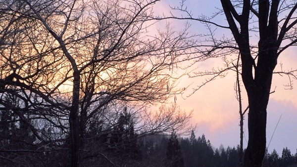 牛舎の裏山の小高い所へ登り朝日を浴びる。