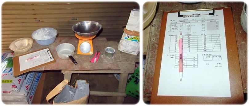 基準量を計り土に混ぜますが、この作業を息子にして貰いました。