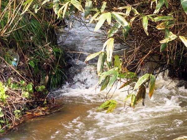 このところ気温が高かったので、雪解け水が沢からながれ込んで来てました。