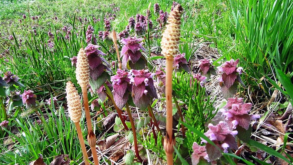 桜が咲いている反対側の路肩に土筆を見つけた。