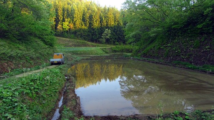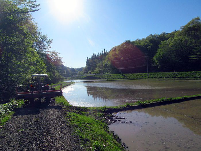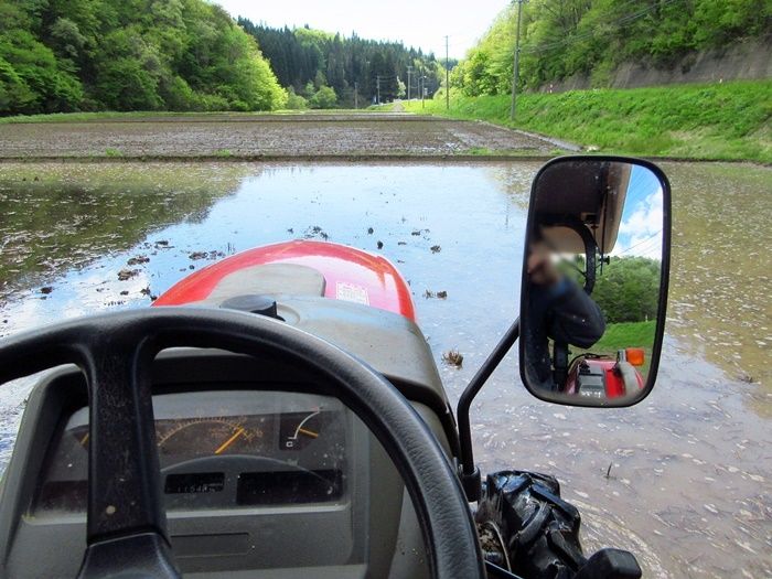 それまでに、代掻きの仕上げが2~3日位、除草剤の初期剤の散布や畦畔ポリ張り等