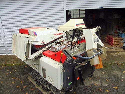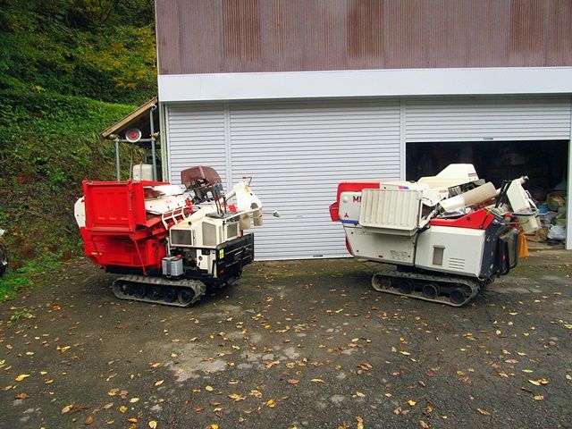 あきたこまち専用とモチ米専用に使っているハーベスタ2台。