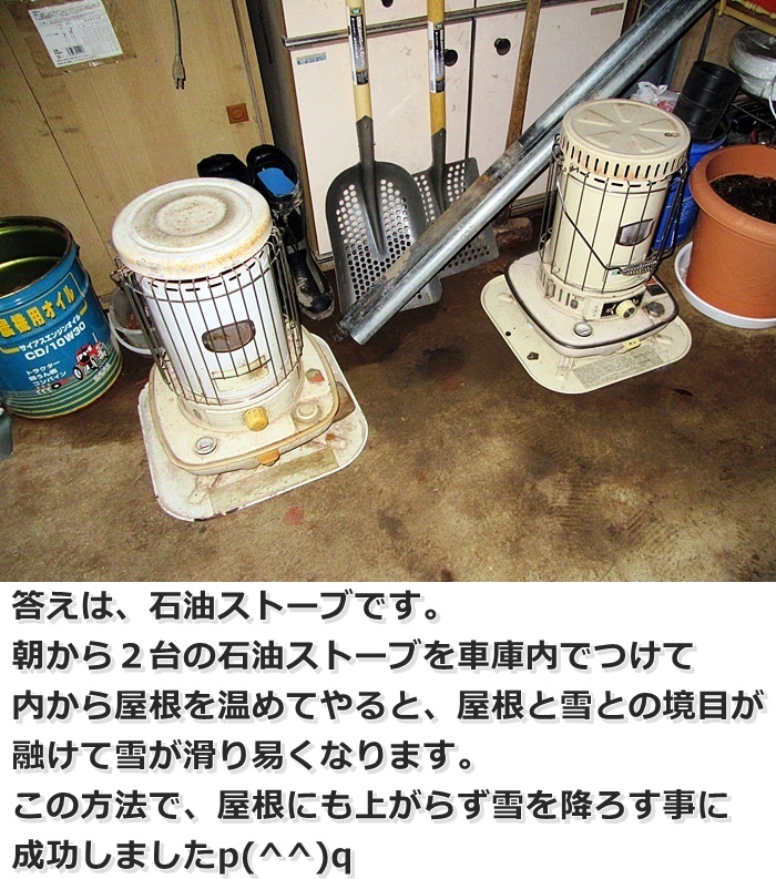数年前からある方法を使って、屋根に上がらずとも雪を落とす事に成功しとる。