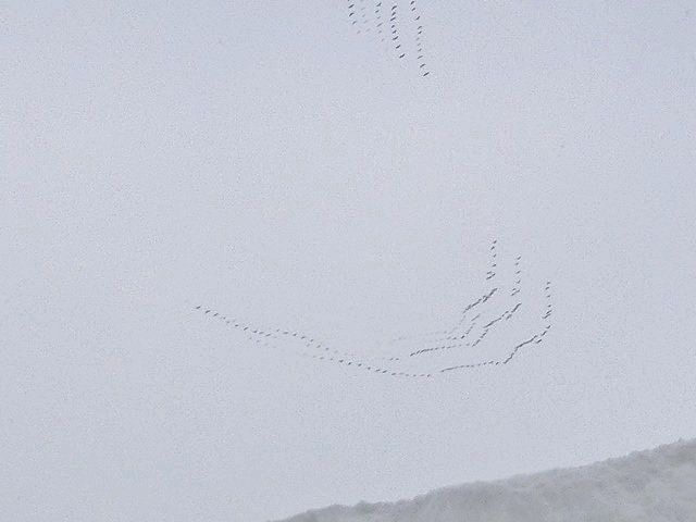 渡り鳥の群れでした。急いで家からカメラを持って来て撮ったのでこんな写真に(^^;)