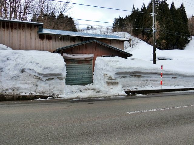 息子が休みだったので、午前中手伝って貰い、農機具の格納庫として借りている入口の除雪。