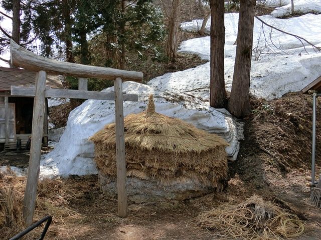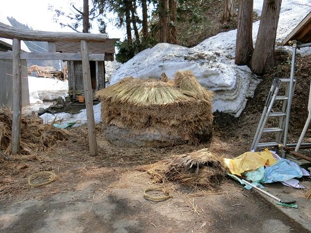 家神様のお祭りが今度の8日にあるので、今日はお社の所にある​ ワラニオ ​積みをしました。