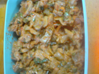 キムチ、鰹の刺し身、ネギ、しそのは、ごま油、マヨネーズ。