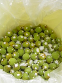 梅を洗って、干して、塩分14%のしおで漬けました。梅は五キロありましたよ。他にも青梅約五キロありました。こちらは、お母さんが梅酒にするみたい。