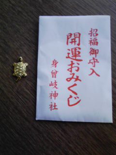 HAPPY NEW YEAR 2008みなさん!今年もヨロシクお願いします。(^∀≦)-☆月日の流れは早く、今日2008年がスタートしました。今年はどんな年になるんでしょう?幸先よく亀ちゃんのドラマがスタート!そしてドリボS!!・・・続いてコンサの報告があると嬉しいなぁ~~☆CMにもいっぱいいっぱい出て欲しいなぁ~~!CMといえば昨日のカウコンでケンタッキー30秒バージョンもGetできて一安心。早く黒胡椒チキン食べに行きた――!!!雑誌の解体作業が出来ないまま新年を迎えてしまいました。年末に発売されたComo・GALAC ・ピチレ etc...雑誌が( ̄_ ̄ i)タラ~ファイリングされたファイルも結構な冊数になりみなさんどのように収納されていますか?今収納している場所もそろそろ限界、、、 段々話がそれましたが、今年も亀ちゃんが活躍することが私にとって一番嬉しいことです!゚+.――。o○*☆*○o。――゚+.――。o○*☆*○o。――゚+.初詣に行き“おみくじ”を引きました。そしたら!!そしたら・:.,;*o(*´∀`*)o・:.,;* 招福御守が亀でしたぁ~~~!O(≧∇≦)O イエイ!!今年は良いことありそう~~~!近くで亀ちゃん拝めるとか!!(*≧m≦*)都合のイイことばっかり!!(*^-^*)>"現実そうなって欲しいです―――――。(笑)
