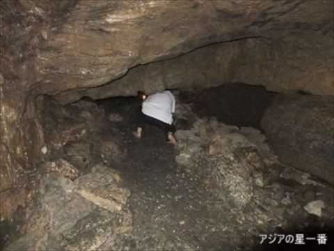 洞窟内部に入って来ました。こんな狭い所を潜り抜けて行きます。
