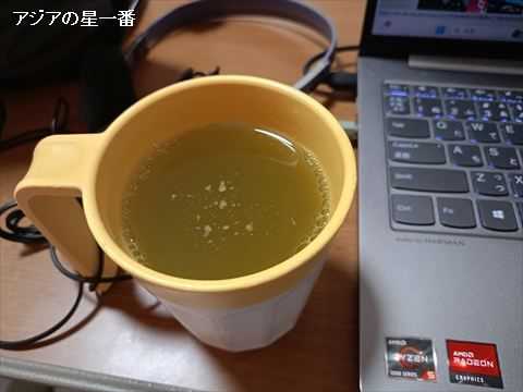 夕食前のお茶です。水分を多くとる為にお茶も飲みます。