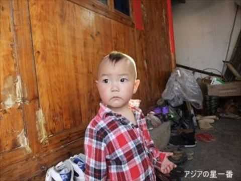 トウチャ族の子供です。頭のてっぺんの前の部分のみ、髪を残して後は、