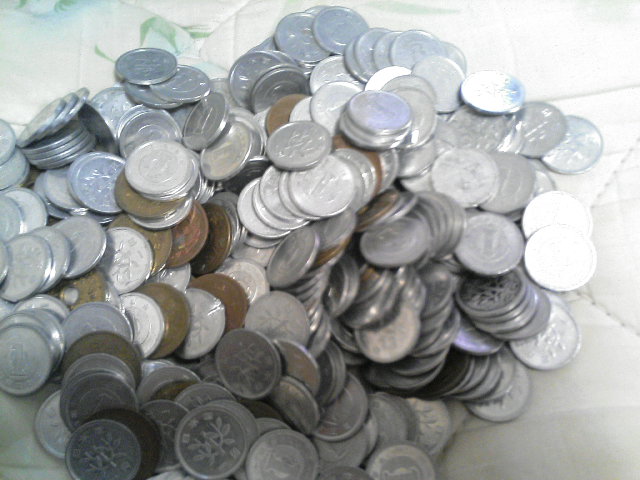 一円玉と五円玉と十円玉が入っていました。これは・・・中2くらいの時から貯めているやつです。サイフの中に1円5円があるたびに入れてました。数を数えてみると1円→317枚5円→31枚10円・・・6枚(たまに入れてたwこれからも貯めていこうと思います。数えていて少し楽しい遊びが考え付きました。思考回路をフルに使ってやる遊びです。まず、10枚くらい100円玉を年代が書いていない裏側向きに並べます。それをみて年代ごとに並び替えるだけです。かなり、頭使いますよ。やってみてください。ちなみに神雪は・・・全然合いませんでしたが^^;