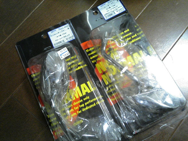いまさっきナナハンキラーとコー○ンに行ってきました。ヘルメットコーナーをみていると店員さんが話し掛けてくれました。店員「どのようなヘルメットをおさがしでしょうか?」神雪「自分でも入るサイズのフルフェイスを探しているんですが・・・頭がでかいので^^;」店員「でかいのありますよ。」かぶると・・・神雪「確かに今までかぶった中で一番大きいですが…やっぱり入らないですね^^;^^;^^;」店員「そうなると・・・あっ、これならどうですか?」神雪「入った~wwwすっぽりと収まりましたw」店員「加工に一週間ほどかかりますのですが良いですか?」神雪「今日は、金を持ってきてないので明日また来ます~w」しかも・・・ラッキーなのは、メットが安売り中でフルフェイスのカッコイイのが・・・なんと!!5040円店員「加工しますと安全マーク(JIS?)ではなくなりますが本当によろしいですか?」神雪「全然構いませんよwかぶれればオッケイです♪普段かぶってないので、無いよりはマシレベルで十分です♪」それでは~また明日~そして帰路に至るわけですが・・・その前に実は買っているものがありました。 なんとっ!!100円安~いwww良い買い物をしました。ですが・・・キャノピーには悪い予感が・・・( ̄○ ̄;)何かというと・・・フロントあたりからキュッキュッキュ~って異音が・・・鳴るように・・・常時なるわけではないのですが耳に障ります^^;注油して様子をみてみようと思います。