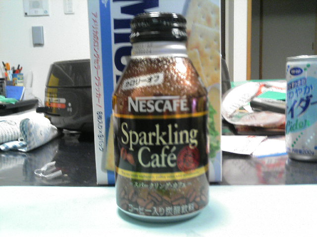 今日は大学の授業が休講だったので久々に、ジェーソンに行きました。すると・・・「おっ、この飲み物は!?」 炭酸コーヒーだwでも正式には・・・コーヒー入り炭酸飲料だそうです^^;値段は、なんとっ!!一本・・・15円安い~www安いので12本も購入しちゃいましたwで・・・味は?????うっえ・・・・・・・・・・・・・・・・・・・・・・誰かにあげちゃおうかなwww