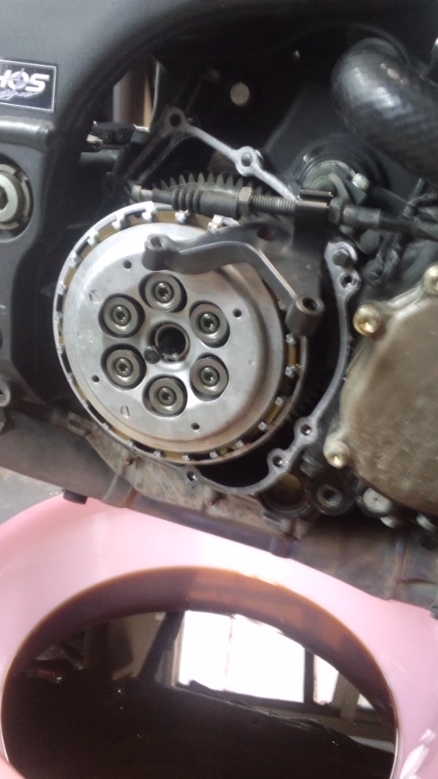 違う用事もあって有給を取っていたので、バイク屋さんにてクラッチをバラし(その間バイク屋さんには前後ブレーキ交換依頼)