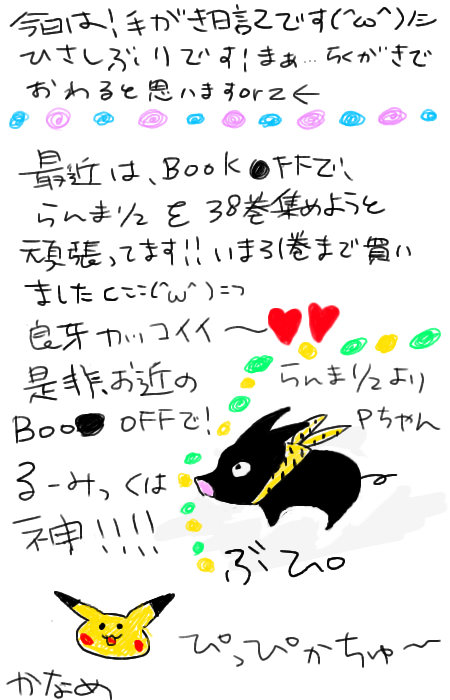 お久しぶりです(^ω^)最近全然パソコンに触れてなくって日記も書けずじまいでしたー・・・orz個人HPを開設したのでここよりも更新率が高いかと・・・(笑)http://77.xmbs.jp/kaname28/パソコンより携帯でみたほうがいいかも!(笑)それではー!