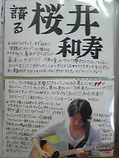 すいません、唐突ながら言っちゃっていいでしょうか。 櫻井さん、マジやばいいや、ユーチューブという これまたステキなものを見ましてですね、超萌える!!!!!←かっこよすぎるよーやばすぎるよー櫻井さん半そでとか、まじヤバス。はなぢ出ちゃう(爆)一生懸命にギターを弾いてる中ケーも最高。なに?!超やーばーいー超チェルノブイリ (?!)(※1986年に原子炉の爆発があった原子力発電所この日記と全然関係ない)てか、何がステキってまずあのつぶらな一重だよね←で、一生懸命に歌っちゃってる顔まじつぼーツボッティ。今日、初めて「ストレンジカメレオン」って曲聞いた。結構いいね(`ω´)アップテンポなとこが!どんな感じかなぁ・・・「箒星」とか「Dance Dance Dance」?全然系統違うけど(笑)