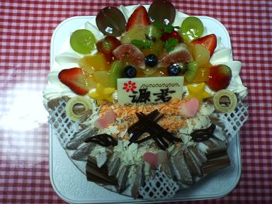 今日は息子の誕生日。と言っても高三で、背丈もとっくに越されている。昨日からの展示会で、すっかりお忘れモードだったが、夕食では息子の好物の骨付きフライドチキンが出たり・・・極めつけは、バースディーケーキ。上の姉がバイト先のケーキ屋さんから買ってきてくれた。ケーキ屋のご主人、奥さんの心遣いで、特別仕様になっているらしい。フルーツケーキとチョコケーキが半々になっていて、フルーツのトッピングも普通より多いらしい。甘いものが苦手な息子本人より、女性群が異常に喜んでいた。ダイエットを気にしている家内は「夜食べたらいけんのんよ。」と言いつつ、上のフルーツをつまもうとして飾りがくずれて、娘たちに非難をあびていた。今日(11/13)は友達の○○ちゃんも誕生日。と話してたら、すかさず家内が「キムタクも今日よ。」と口をはさむ。毎年聞いているので、言われんでも覚えている。