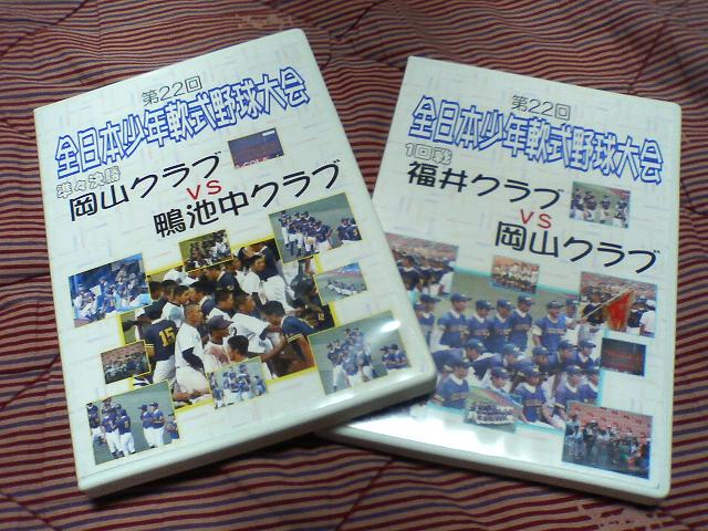 近所に自慢の野球少年がいる。岡山中学軟式野球の選抜選手に選ばれて、エースとして全国大会に出場した。準決勝で惜しくも敗れたが、堂々の全国ベスト4になった。ウチの息子も中学の時に野球していて、その少年のお兄さんが同級だったので、その全国大会の試合のDVDを借りてきた。さすが全国大会のDVDとあって、パッケージとかも映画とかのものとまるで同じで立派。家族で見せてもらって、最近の少年犯罪の多い中で、久しぶりにスカッとした気持ちにさせてもらった。彼の将来・・・・。私を含めて周りの人は少なからず期待している。大きな夢に向かって、突き進んでもらいたい。プライバシーのこともあって、詳しくは書かないけど、将来、堂々とここに紹介できることを願っています。
