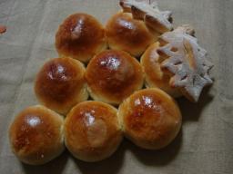 みかさんのリッチ生地を参考にくるみレーズンパンを焼きました。これはお友達から「くるみとレーズンのパンがいい」というリクエストがあったので、まずは試作品。実は、これを焼く前に天然酵母の生地で作ろうとHBに材料をセットしたのですが、出来上がった生地を見て・・・・“くるみとレーズンが入ってない!!”HBのレーズンナッツ自動投入のボタンをセットし忘れ、容器に残ったままでした(涙)。とりあえず生地は適当に成形して焼いたのですが、せっかくのくるみとレーズンが・・・と思い、再度焼くことに。でも、生種がもう残ってなかったので、ドライイーストで焼きました。ツヤだしをするかどうかをいつも悩みます。今回は半々で塗りました。今日はパン作りで終わった1日でした~。(いつもだけど)【材料メモ】・はるゆたか100 180g・石臼挽き春よ恋100 20g・きび砂糖 大さじ1.5・塩 小さじ1/4・無塩バター 20g・牛乳 130ml・ドライイースト 3g・くるみ 20g・レーズン 20g