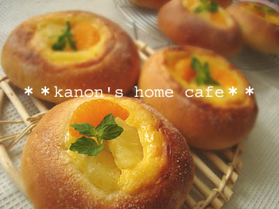 2006.7.30 パイミン&クリームチーズ また暑いのにパンを焼いてしまいました。ホシノ天然酵母パン種(丹沢酵母)で、みかさんのパン。本当はパインだけの、パイン&クリームチーズパンだけど、昨日のパイミンがあったのでみかんも乗せました。中のフィリングは、クリームチーズとバター、卵黄、お砂糖を練ったもの。生地は、みかさんのリッチ生地に卵が1個入った生地で、更に風味が増します。ホシノ天然酵母の焼きたてパンlessonに載っています。今日は、リラックスハーブティ(ジャーマンカモミール・ラベンダー・レモンバーム)を入れてティータイムです何かちょっとパンとフィリングのバランスが変だよ~、でも味は美味しかったです。特に中のクリームチーズのフィリングが、カスタードとはまた違う感じで美味しかった~8個焼いて、私2個、ダンナ1個いただきました。 ↓レシピはコレたかこさん&みかさんの大切な人と一緒に食べたいお菓子とパンのレシピ↓生地はこちらからホシノ天然酵母の焼きたてパンlesson↓酵母はコレ□冷蔵商品□ホシノ天然酵母パン種(丹沢酵母) 250g***************************私が入院中に壊したダンナのパソコン、調子悪いまま使ってたらとうとう壊れたので、明日修理に持っていきます(まだ買って半年も経ってないのに)。直るまで彼も私のパソコンを使う(仕事で)ので、しばらく思うようにパソコンが見れなくなっちゃう~今日・明日ダンナがいるので、またお返事遅れたらごめんなさい。(と、言いつつもいつも頻繁に見てたりするけど。。。^^;)