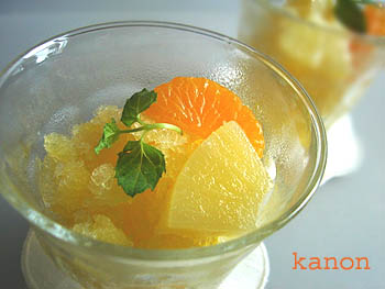 2006.7.28 たかこさんのミモザのグラニテ(もどき) 本日、2個目の日記です~。今日は冷たいおやつ昨日作っておいた、たかこさんのミモザのグラニテもどき(笑)100%オレンジジュースと、スパークリングワインとお砂糖を混ぜ合わせて作る氷菓子。オレンジと一緒に盛り付けます。なんでもどきかって言うと、スパークリングワインをこのおやつの為に買うのがもったいなくて(節約だしね)、サイダーで作ったから。で、オレンジキュラソーがあったからちょっと混ぜてみました。更に節約で、オレンジを買わずに、缶詰のパイミン(笑)味はオレンジ、食感は、かき氷とチューチュー(←地方によって、呼び名違うかも?)の中間な感じ。シャリシャリで、スプーンに1口食べただけで、頭がキーンと痛くなるくらい冷た~い!グラス一杯食べたら寒くなっちゃって、エアコンを一時オフにしたくらい冷たいです。レシピの2倍量作ったので、しばらくこれで毎日爽快!?です↓レシピは、この本からたかこさん&みかさんの毎日作りたくなるお菓子とパンのレシピサントリーのケーキマジック オレンジキュラソー 《 製菓用 》 100ml 40度