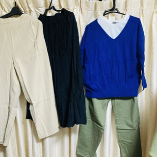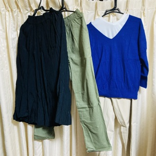 ボトムス3点(カーキのチノパンLサイズ、ベージュのパンツLサイズ、黒のスカートMサイズ)