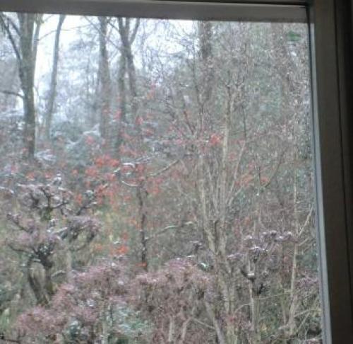 昨8日、朝の六時ごろから初雪が降りました。用事で訪れたKさん宅の居間からの眺めです家の前がちょっとした林になっています。赤い柿と積もり始めた雪の白さを写したつもりが何ともしまらない写真になってしまいました。大体、家の中から写そうというのが横着でした被写体に近づかないといい写真は撮れませんねえ。久しぶりの訪問だったのでたくさんおしゃべりをしました。話題1この冬はなぜかまだまだ柿の実が残っている。そして冬になるとピーッと鋭く鳴くヒヨドリが姿を見せないちょっと異常ではないか。話題2事故のため、Kさんは左手しか使えませんその左手で絵を描いています。今回、書にも挑戦して「夢」という文字を書いた。話題3スティーブジョブズ氏の言葉 Stay hungry,Stay foolish. 印象的な言葉ですねえ。あと、何をしゃべったのでしょう