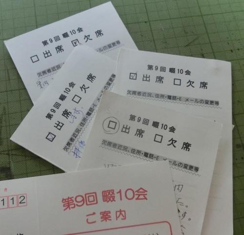 7/7にクラス会の案内71通を出した返事の締め切りは9/15現在返信が届いたのは19通出席6名、欠席13名(本人死亡2名)困ったのは差出人の名前が書いていない3通一人は郵便番号が書いてあって差出人を特定できた〈お名前〉という欄をつくらなかったのはこちらの落ち度