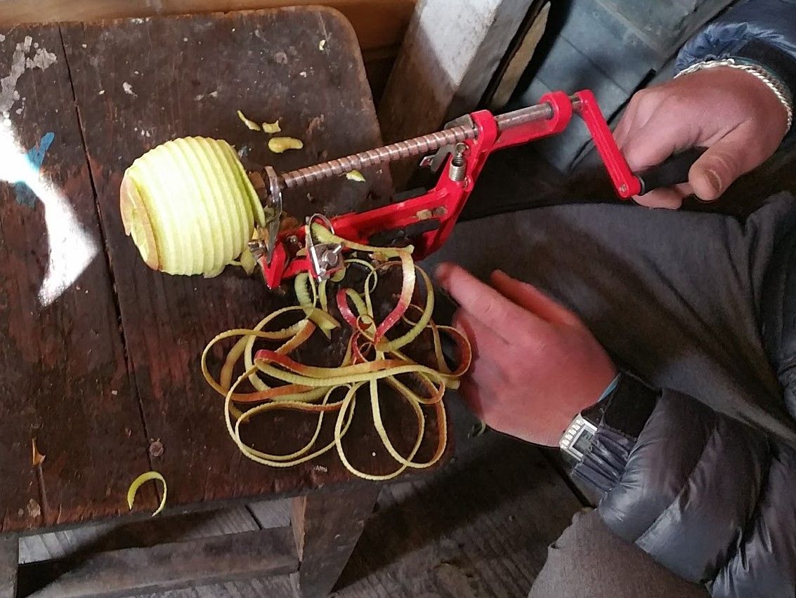 リンゴの皮むきネパールのトレッキング途中で見かけたリンゴの皮むき器です皮をむく芯を取るスパイラル状にカットするこの道具は上の三役をこなすのですよく考えられた道具です日本にもあるのかな?50年以上も前からのリンゴの生産地・ジョムスンここではリンゴの古木=巨木をたくさん見かけましたそしてまた新しく苗木を植えて二年目というバラタン村などリンゴの産地を通過してネパールでもリンゴを生産しているという事実を知りました