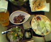 今夜はオフィスレディースの会、Vol3(くらい?)会社近くの居酒屋へ。まず寒天だーと思って店員さんにスプーンを借りてつるんと。空になった寒天の容器に店員さんが目を丸くしてました…。必死で寒天ダイエットの説明をしてしまった…。ま、D(ダイエット)中ってことで、ローズヒップアセロラサワーとシソレモンサワーを注文。美容にも気をつかわなきゃ!ってことで。断酒してたのに…。うう…ゴキュゴキュ。容積:??太っちょ度:??