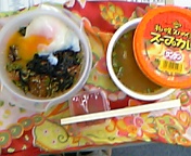まず、お約束のぶどうをつるんとな。今日のお昼のメインはキジ焼きどーん。と自分では名づけてます。玄米ご飯+ほうれん草を軽く炒めたの+ピーマン(赤&緑)とりつくね(ネギたっぷり)にはい、温泉たまご~タマゴは一日一個っていうのが実家のお決まりだったので、一日一個以上たべるとかなり罪悪感。でも温玉はやめられません。巨人・大鵬・玉子焼きっていってたお父さんの気持ちがわかる・・・。テヤンデイ!ヒーック!※かなりの満腹感で、丼終盤3口残しました。おかしい・・・・残すっていう概念がない人間なのに・・・。