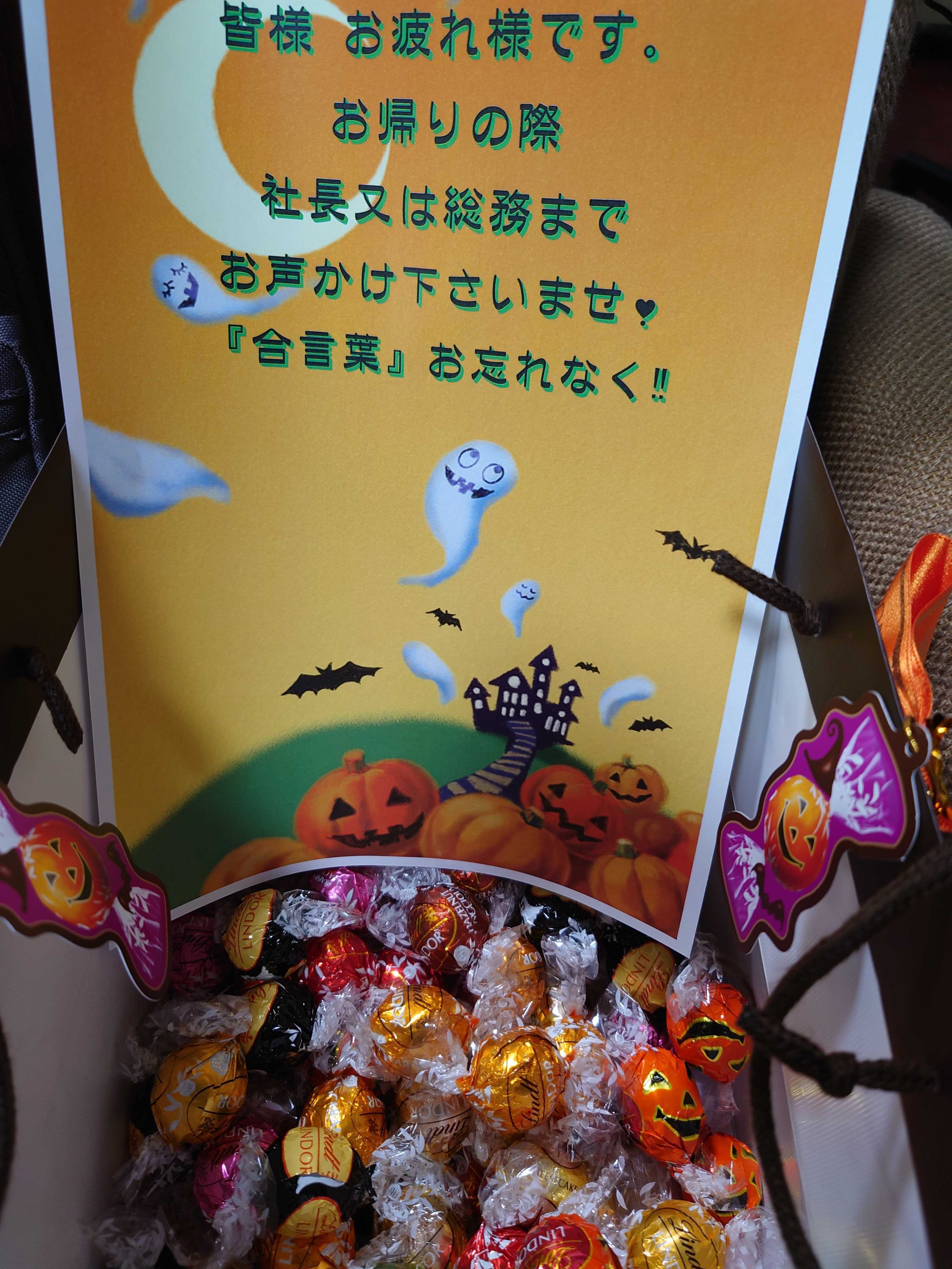 十月最後の最終日ハロウィンなので、帰りに「合言葉」を言ったらのちょっとしたお菓子を用意恥ずかしながらもみんな言えましたTrick or Treat可愛いリンツのチョコのお裾分けちょっとハッピーになりますね会社概要:https://kgk-co.jp/KGK社員ブログ:https://kgk-co.jp/163/動画PR :https://www.youtube.com/watch?v=7e33g75_jX0FB :https://www.facebook.com/seijitsuseizou
