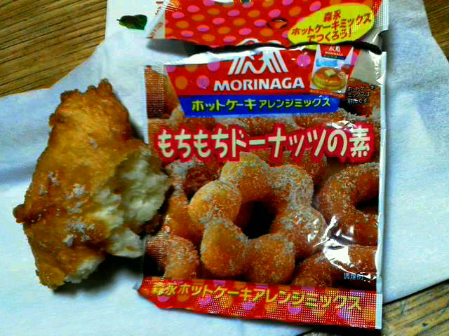 食品売り場にウロウロ。手作り、ケーキ材料売り場に…(p_-)お〓「もちもちドーナツ」?楽しめるかも…。さっそく次の日。