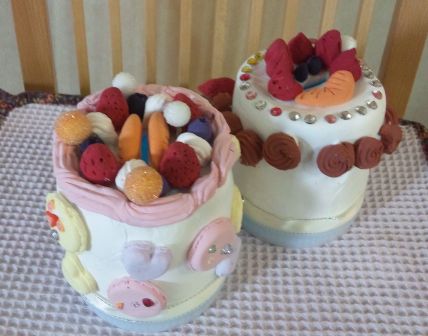 夏休み真っ盛り。。。キッズレッスンが続きます。今日は、生徒さんのお子様のキッズレッスン。お母さまのSさまは、今日はポーセラーツに挑戦です。焼きあがったらUPしますね。Mちゃん、Hちゃんは貯金箱を作りましたよ。仲のいい姉妹なので、おそろいでケーキの貯金箱づくり。粘土でいろんなフルーツを作って盛り付けしました。二時間飽きることなく、最後まで頑張って作れましたね。あれもやりたい、これもやりたいと、ちょっと欲張りなMちゃんでしたが、女の子ですもの。やりたい気持ちを大切に。。。お家でも何か作ってみてね