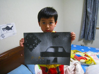 ヤフオクで 落札した システムミドルベッドカンガルー便で 13個もガレージに運んでもらって とりあえず ダンボールを開けていました。じゃ、たあまんがお絵かきしたい~と。どうせ、捨てるんだし、いいよ~将来は画家??かと思いながら親ばかですね無言で30分書きまくっていましたダンボールよ ありがとー『海から階段を登っていくと、太陽で服を乾かす』といっていた。想像力豊かですな~たあまんは、すごくたのしそうだった。で、ラッキーなことに廃品回収のトラックが来て ダンボールを全部持っていってくれました^^100円もっらっちゃいましたうれしかったな~
