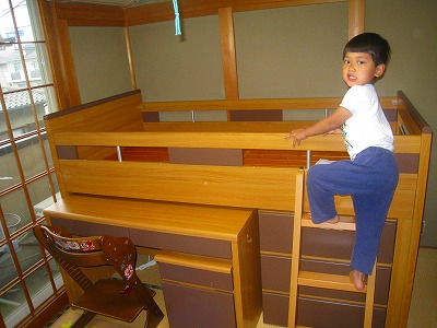 ヤフオクで落札した展示品の システムミドルベッド自分部屋デビューです。 一人っ子ですからね^^布団カバーセットとマットレス を、○ッセンで、注文済み~たあまんは、大喜び~喜んでもらえて、よかったよかった。>定額給付金で買ったのだついでに、寝る練習もしました~イスも、いるな~ でも、とりあえずまだいいかな。