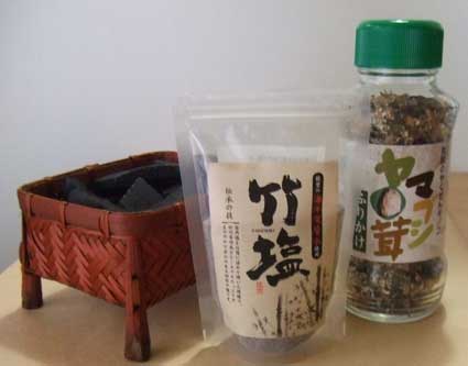 竹塩買いました♪ 石川県倶利伽羅の新竹に、日本海奥能登の粗塩を詰めて釜でじっくり焼き上げてできた国産竹塩だよ♪国内産て珍しいよね・・・即買いしました(笑)竹塩だけ買ったのに、かごに入った竹炭とヤマブシ茸のふりかけがオマケ。買ったものより大きいオマケって・・・ 一般にスーパーとかで気軽に購入する塩だけど、精製の過程で貴重なミネラルが失われるんだよね~(T-T)ちょっと色は悪いけど、カルシウムも海のミネラルも生きている竹塩は旨い!青竹筒に塩を入れ何日も高温で焼いて作るから、塩本来の不純物と毒素成分が除去されて、サラサラした粒子になるんだって。。。マイルドな塩味は美味しいから摂り過ぎには注意しなくちゃね♪超汗かきのあたしはジムに行く時ペットボトルのミネラルウオーターにほんのひとつまみ竹塩を入れて持って行くんだよ。微量だから塩味はしない(笑)ミネラルウオーターに更にミネラル(=^m^)ぷ♪だけど、なんかイイ気がするの汗がポトポト床に落ちるんだけど、竹塩ミネラルウオーターを飲むとミネラル補給もできてる感が心地いいの。いろいろあるもんだ・・・竹塩の仲間 歯みがき用やエステ用もあるんだね~ 知らなかった~~~♪ アララ…同じのを載せちゃった^^;まぁ、いっかぁ・・・_(._.)_
