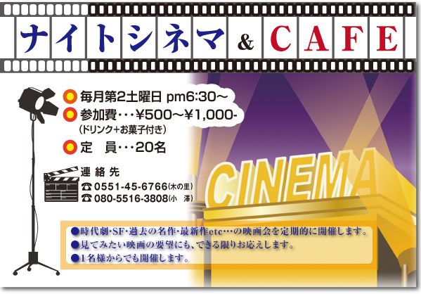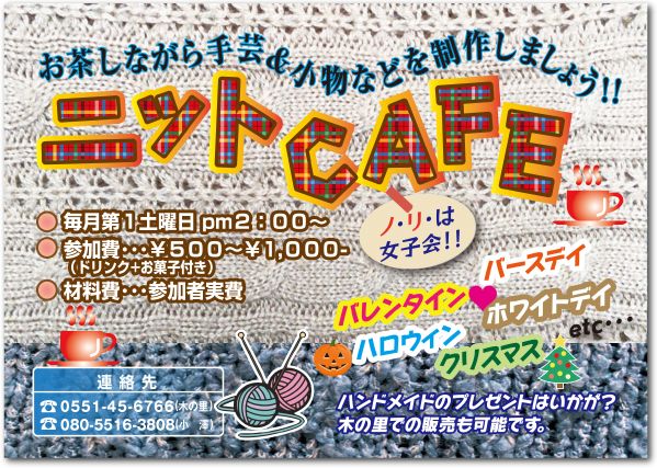 木の里さんでやるイベントを増やすんだって今まで催していたものも含めて・・・こんなお知らせチラシを作ったイロイロだね