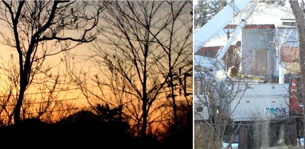 今日も綺麗な朝焼けだね・・・なんて言っていたらお昼過ぎになって、窓の向こうに作業車が止まって中から作業員さんが出てきた高くて寒いところでの作業・・・仕事とは言え、本当にご苦労様です<(_ _)>ペコリ