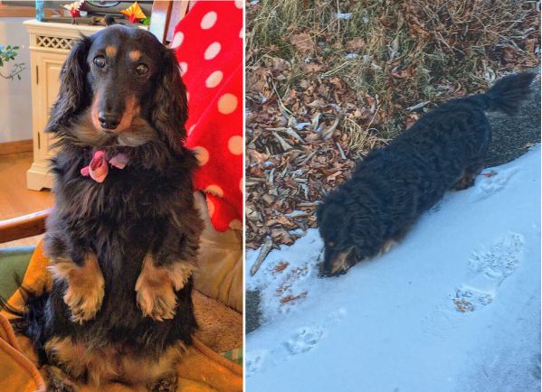 散歩に行こうって・・・猛アピール(笑)路肩に残る雪の上を、嬉しそうに歩いてるメイちゃん