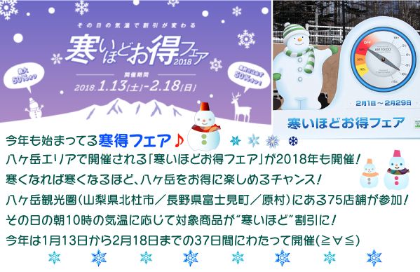 今年はちょっと早くから始まった気がする(*^^)v清里近辺の対象店舗♪美味しい、ステーキもお寿司もハンバーグもお・と・くえ?安い!