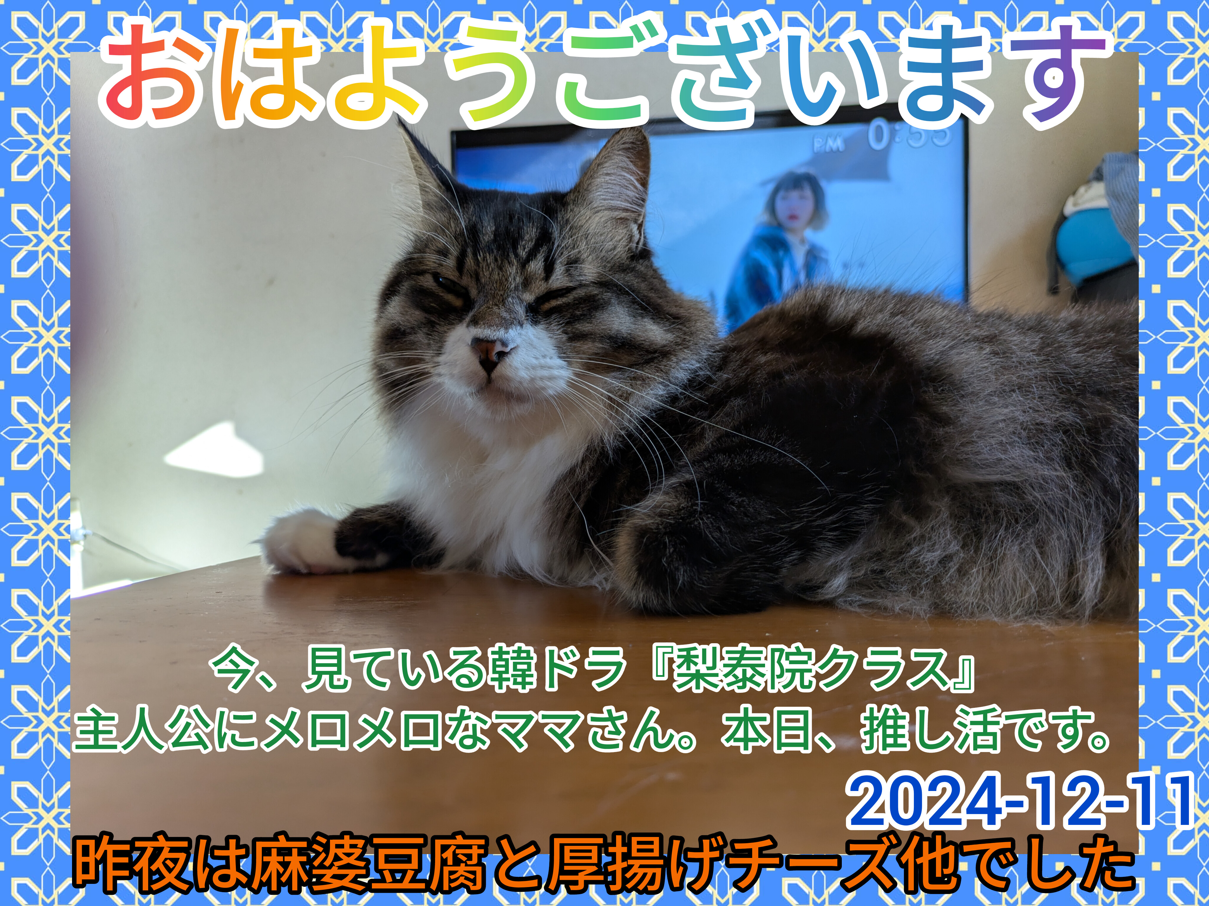 まずは、11日水曜日。推し活でした。それからやはり、ソウルの寒さは冷蔵庫の中でしたね。無事に帰宅。集会場所以外の街は普通の日常でした。食料品のお買い物しています。朝のニュースで運転見合わせにはびっくりしました。真面目に主婦いたしました✨お散歩の会の納会でした。そして、最後に今日の朝葉部屋です。スーツけーやらなんやら所定の位置に。。。。ランキングに参加しています。いつも応援ありがとうございます。