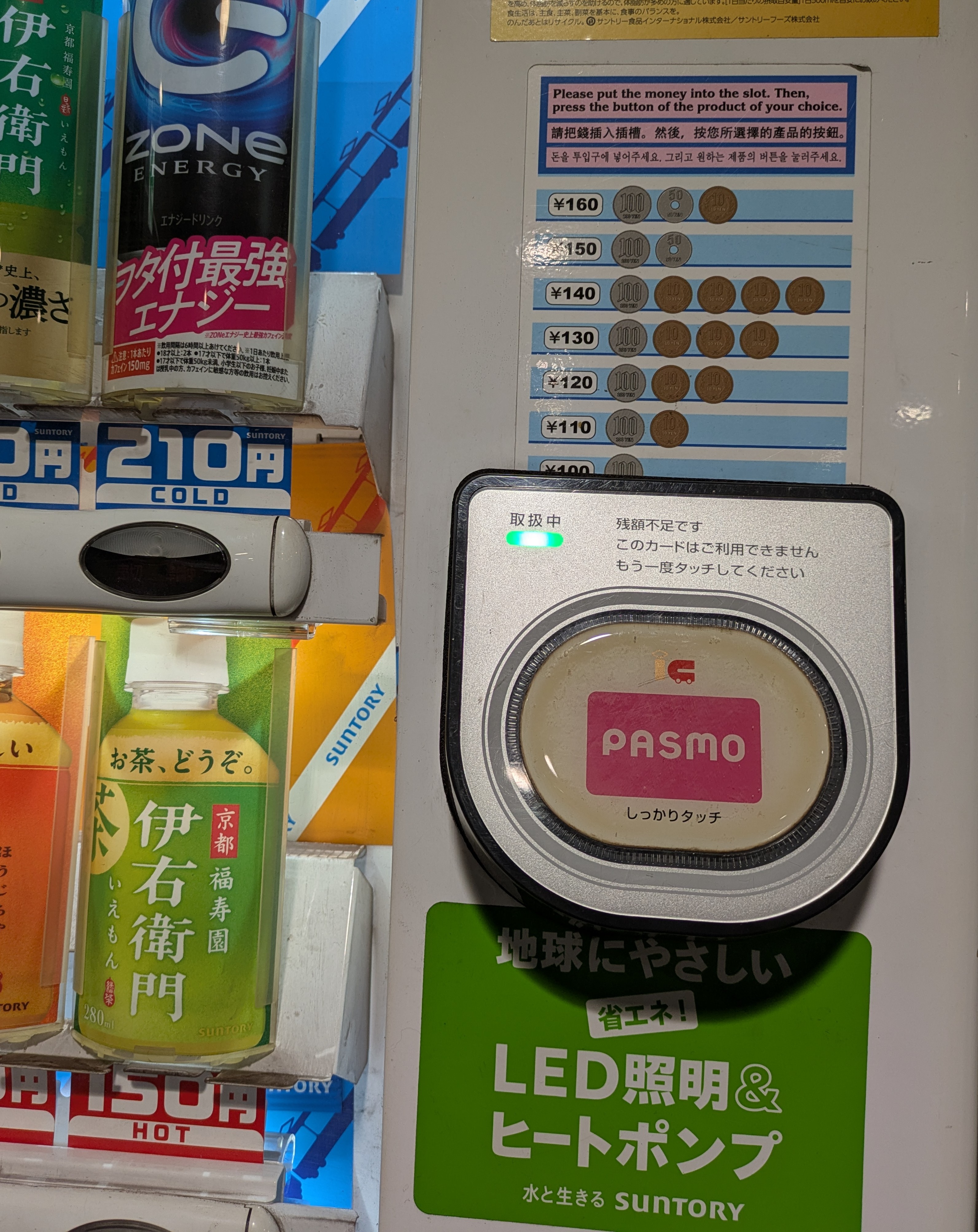 本日、労働です。途中駅での自動販売機。数字は万国共通だよね。新500円玉のほうが使えたり使えなかったり大変そうだけどなぁ。