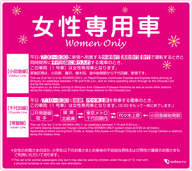 朝葉は時には平日の労働があります。最寄り駅を7時には電車に乗っています。都心につくのが8時少し過ぎます。女性専用車両に男性の異国の方がお乗りになります。あれほど見やすいステッカーが目にはいらないのかしら?周囲の様子を気にする素振りもない様子です。女性専用車両はチカン被害の防止もあってもうけられてます。つまらない誤解や偏見を生まないためにも公共交通の表示はよくご覧になるべきです。夕方の帰宅ラッシュ時、異国の方々が『オーマイゴット』とおっしゃりながらスーツケースをガラガラ、あるいは駅のホームでスペースをとりおしゃべりに興じてますが。。。たくさんの人が移動する時間帯です。ピーク時はすらしたほうがよろしいかと電車に乗るときにはきちんと整列します。お子さんも整列します。先日、整列して電車を待っている一組の外国人親子がいました。電車のドアがあくと5歳くらいのお子さんが割り込み席をゲット。母親は座りませんでしたが、なんだかなあと思いました。日本人は小さなルールも大切にし、人様に迷惑をかけないことを重んじる民族だとあらためて思いました。