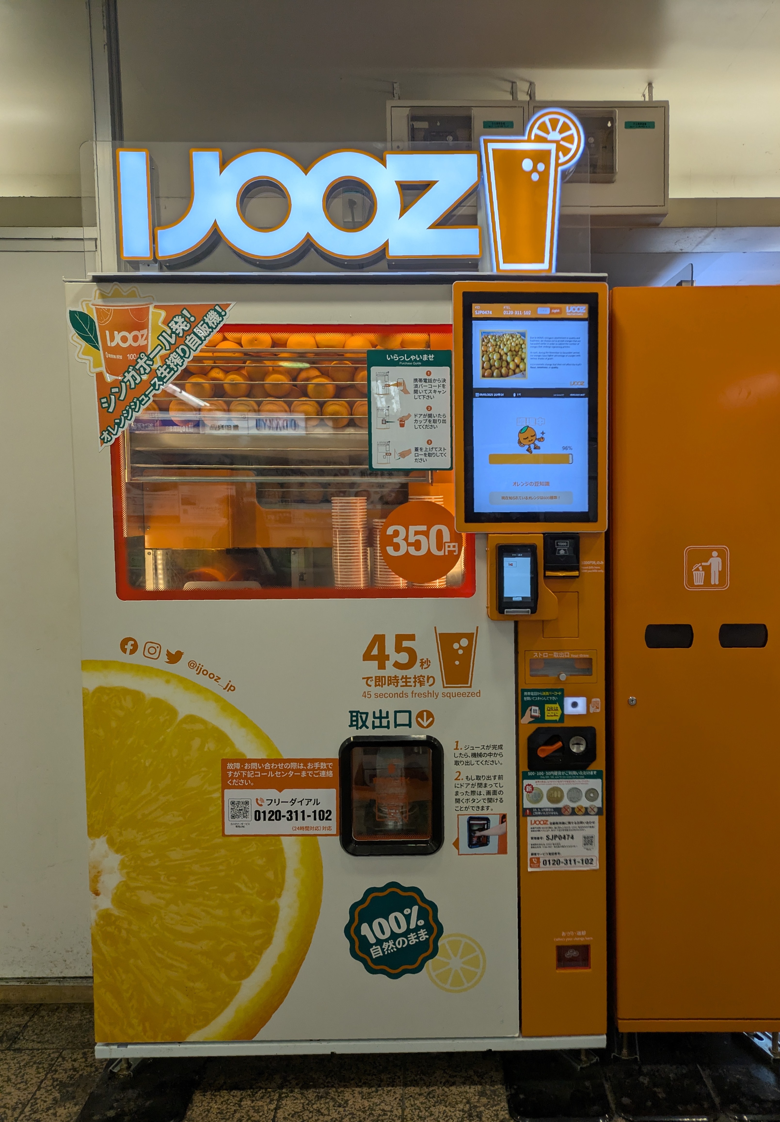 なんでも巷には生のオレンジを販売機の中で絞って提供してくれる自動販売機が存在し、大変人気を博しているそうです。朝葉も一度いただきたいとかねがね思っていました。しかし、昨年、その自動販売機を発見し、次の機会にと思っていたら、その場所から自動販売機はこつぜんと姿を消していました。今年の元旦、労働に行く途中の池袋駅でまたまた見つけ、帰りにここで自分へのお年玉としていただこうと楽しみにしていましたが、池袋駅は大変複雑で、二度とその場所にはたどり着きませんでした。朝葉には縁がないと思っていたらお会い出来ました~~~~\(^o^)/こちらから始まります。交通系ICカードか現金が使えます。本当に45秒ででてきました。ストローもいただいて。感動の美味しさでした。濃縮還元果汁でなく、本物のオレンジなのです。なんでも、こちらの自動販売機は350円と450円のふたつのパターンがあるそうです。その違いはどこに。。。。。いつも応援ありがとうございます。
