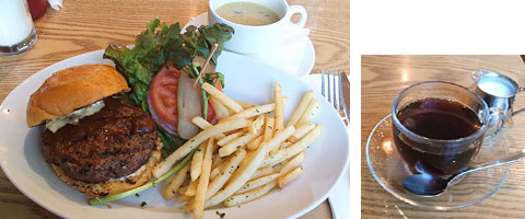 アメリカンブラッセリー、ROTI(ロティ)でランチを食べました。このお店、六本木駅の近くにあるピラミデビルの1Fにありますが、2号店が東京ミッドタウンにも入っています。六本木店の平日のランチセットは、1,400円~。セットには、スープorサラダ、ドリンクが付きます。・ロティ ビッグバーガー(1,400円)ハンバーガー好きの私のお目当ては、これ!迷わずオーダーです。まず出てきたスープは、ツナの入った、わずかにカレー風味のビーンズスープ。ヒヨコマメ、枝豆、金時豆、大豆など、お豆がタップリでした。迫力の大きさのハンバーガーは、バンズは、黄色っぽくて、フワフワ。お肉はとっても厚くて、1-2センチ程度はあります。赤味が残る程度に焼かれていて、青山のル・カフェ・ベルトレと比べると、モロモロッと、とても柔らかいお肉でした。上にはBBQソースが塗られていて、そのバーベキューソースのお味が結構強かったです。シャキシャキのお野菜は大きくて、バンズに挟むのは一苦労。レッドオニオンは厚切りで辛かったので、チョット残してしまったのはご愛嬌!?フレンチフライもタップリですね。食後のコーヒーは、ガラスの器に入っているところがなかなかお洒落です。ガラス張りで開放感あふれたカジュアルなお店で外国の方も多い、お洒落なお店です。お休みの日には、ブランチメニューがあったりと、まさにアメリカン。メニューを見ると、やはり東京ミッドタウン店より、六本木店の方が、お得な価格設定のように思いました☆ お気に召しましたら、是非・応援クリックお願いします!- - - - -<ROTI 六本木店> 住 所 : 東京都港区六本木6-6-9 ピラミデビル1F 電 話 : 03-5785-3671 営業時間 : ランチ(平日)11:30-14:30、ディナー18:00-23:00(日祝は22:00まで)、 ブランチ(土祝)11:30-17:00、朝食(日曜)11:00-15:00、 カフェ(平日)14:30-17:00、年中無休(年末年始は要確認)