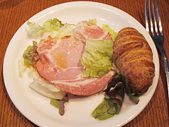 日比谷線・神谷町駅から徒歩2分、坂の途中にあって、隠れ家レストランという感じのお店、ビストロチョロズディー(Bistro Choro's D)に行きました。グリーンが飾られて、白いペンキが印象的な可愛らしいお店です。ランチコースは、1,000円~1,500円。私達は、オードブル、スープ、サラダ、メイン、デザート、ドリンクのつく充実のCランチ((1,500円)を頂きました。・前菜・メイン&サラダ&スープ前菜は、スモークサーモン、レバームース、イタリアンハム。特にレバーは、パンがススム美味しさです。具沢山のスープは、アツアツが好印象でした。メインは、4種類程度の中から選ぶことができます。私は、カジキマグロのステーキをチョイス。薄いですが大くカットされたカジキマグロは、半生で、ジューシーでした。・デザート&コーヒーデザートも4種類程度から選べます。私はチョコレートケーキをチョイスしました。実はこのお店、satopiesさん に教えていただきました。素敵なお店を教えていただいて、ありがとうございました☆ お手数ですが、応援クリックお願いします!- - - - -<ビストロチョロズディー(Bistro Choro's D)> 住 所 : 東京都港区虎ノ門5-3-10 トランスパックビル1F 電 話 : 03-3434-5453 営業時間 : 月-金 11:30-14:00(LO)、18:00-21:30(LO)、土12:00-14:30(LO)、17:30-20:30(LO)、日祝定休
