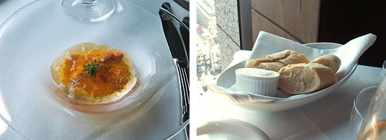 お天気の良い平日、東京・丸ビルの36Fにある、ブリーズ オブ トウキョウ(BREEZE OF TOKYO)でちょっと贅沢なランチを楽しんできました。ランチコースは、2,100円~。私達は、Bコース(3,990円)を頂きました。・前菜(ニンジンのムースとコンソメジュレ、ウニ添え)・パン前菜は、「函館直送生ウニと有機人参のムース コンソメゼリー添え」。大好きな前菜の1つが出てきて、とても嬉しい!冷たくて、キラキラとしていて、春を感じる一品でした。窓側の席のため、前菜を食べている頃、お日様直撃!白ワインがとても美味しかった。。。パンには、まるで生クリームのようにホイップされたバターが添えられています。・魚料理(石ガレイのポワレ)・メイン(豚バラ肉の煮込み 赤ワイン味噌ソース)魚料理は、「函館直送石鰈のポワレ クラムストックソース マッシュポテト添え」。蛤の出汁を使ったソースがとても美味しい一品。蛤のフリットも添えられていました。メインは、2つの肉料理からチョイスできます。私は、「宮崎産 きな粉豚バラ肉の煮込み カボチャのニョッキ添え 赤ワイン味噌ソース」をオーダーしました。味噌を使ったソース、というものに惹かれたんです。濃厚で、赤ワインによく合いました。・メイン(仔牛フィレ肉のロースト)こちらは、同行者のメイン料理、「仔牛フィレ肉のロースト フォアグラムース添え」です。お肉、柔らかそうですね☆・デザート(イチゴのシャーベット&チョコレートケーキ)・デザートその2デザートは、シャーベットとチョコレートケーキの盛合せ。イチゴの酸味が春らしく、パラパラッとドライベリーが飾られていて美しいですね。このお店、平日の13時以降に入店すると、サービスとしてプレートに乗ったデザートから、好きなものを好きなだけ選ぶことができるんです。7種類ほどの中から、私は、抹茶ムース、チョコレートケーキ、バターケーキを選びました。丸ビルの最上階。大きな窓に囲まれたレストランで、東京の眺望を楽しみながらの贅沢な一時。レインボーブリッジや、端の方には東京タワーも見えましたが、さすがに、昼間は日光直撃でちょっと暑かった。夜は、夜景が素晴らしいでしょうね~☆お昼からワインと美味しいお料理で、素敵なゴージャスランチとなりました。 人気blogランキングへ。応援クリックお願いします!- - - - -<BREEZE OF TOKYO(ブリーズオブトウキョウ)丸ビル> 住 所 : 東京都千代田区丸の内2-4-1 丸の内ビルディング36F 電 話 : 03-5220-5551 営業時間 : ランチ 11:00~(LO.14:30)、カフェ 15:00~(LO.16:30)、 バー&ディナー 18:00-24:00(LO.22:00、日祝は~23:00、LO.21:30) 無休(丸ビル休館日に準ずる)
